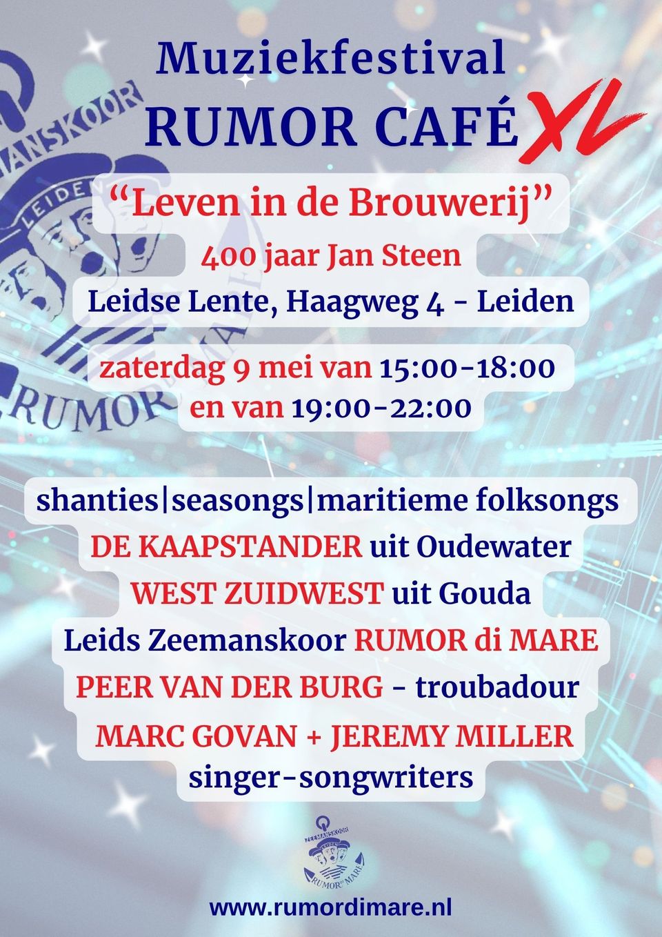 In de middag en de avond hebben we weer in de Leidse Lente ons Jaarlijks festival Rumor Café XL. Met “Leven in de Brouwerij” als thema.