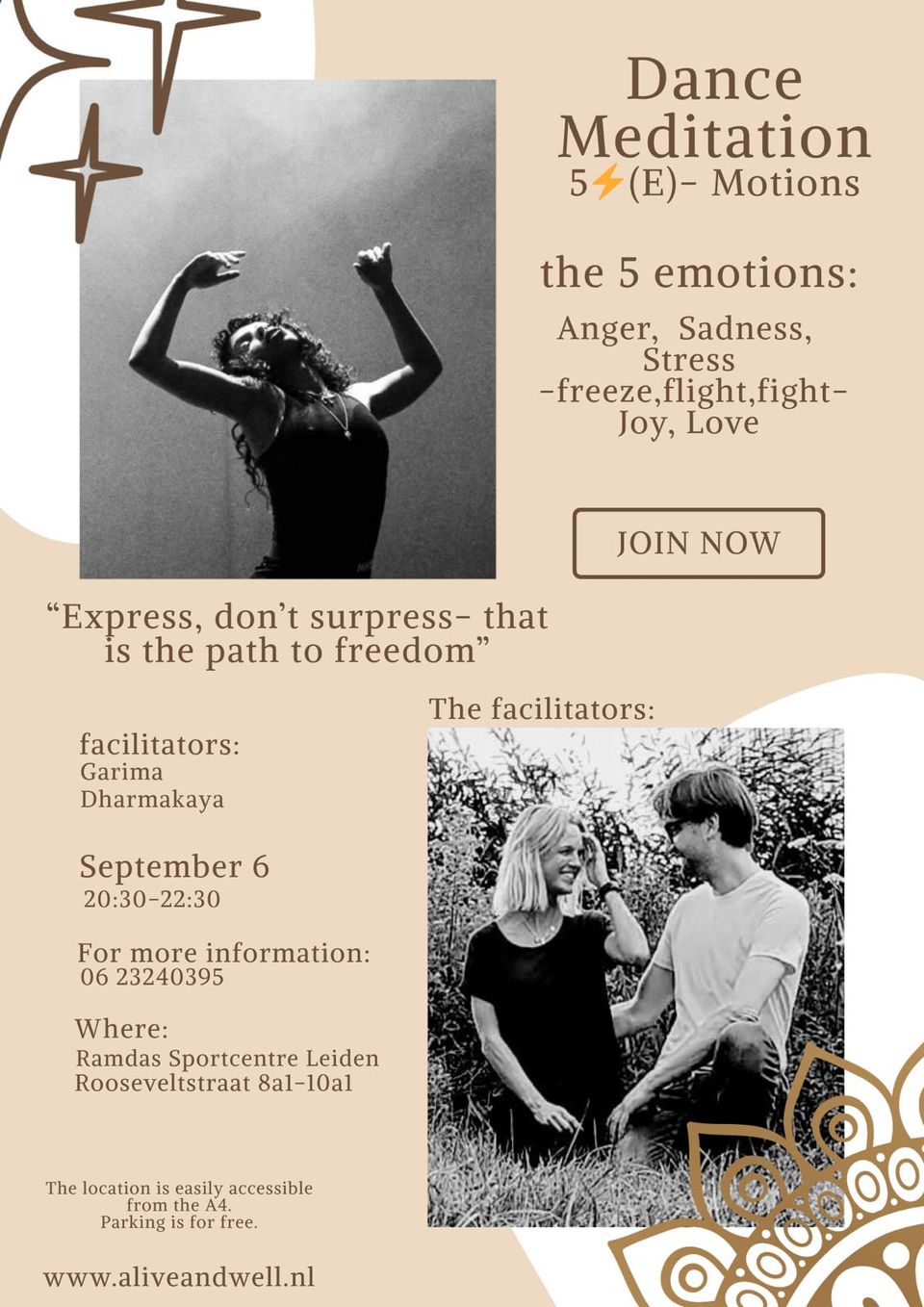 Je beweegt of danst zoals het voor jou voelt - niets moet, alles is welkom;